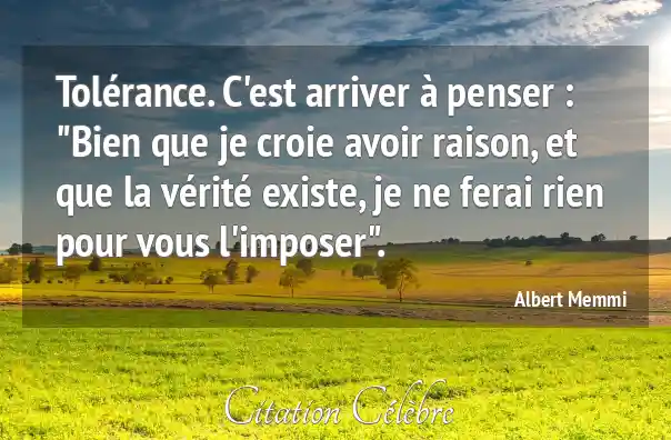 Citation Albert Memmi verite : Tolérance. C'est arriver à penser :