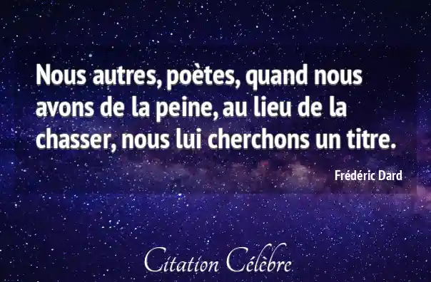 Nous autres, poètes, quand nous avons de la peine, au lieu de la chasser, nous lui cherchons un titre.