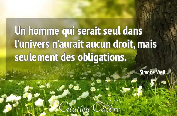 Un homme qui serait seul dans l'univers n'aurait aucun droit, mais seulement des obligations.