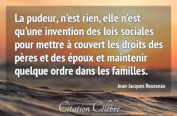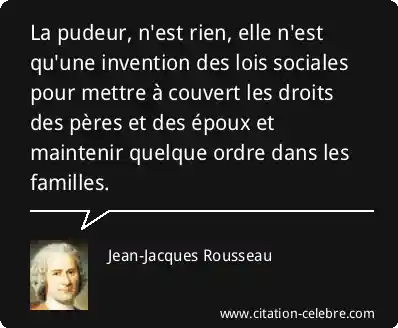 La pudeur, n'est rien, elle n'est qu'une invention des lois sociales pour mettre à couvert les droits des pères et des époux et maintenir quelque ordre dans les familles.