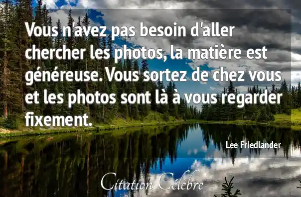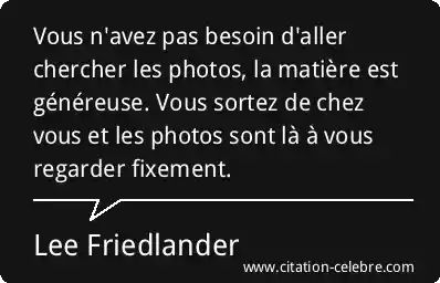 Vous n'avez pas besoin d'aller chercher les photos, la matière est généreuse. Vous sortez de chez vous et les photos sont là à vous regarder fixement.