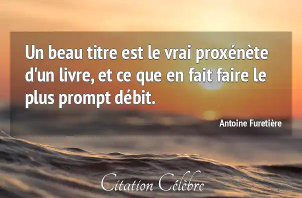 Un beau titre est le vrai proxénète d'un livre, et ce que en fait faire le plus prompt débit.