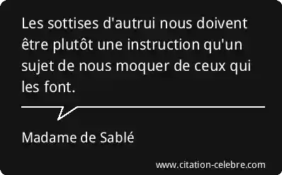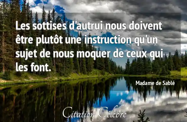 Les sottises d'autrui nous doivent être plutôt une instruction qu'un sujet de nous moquer de ceux qui les font.