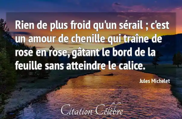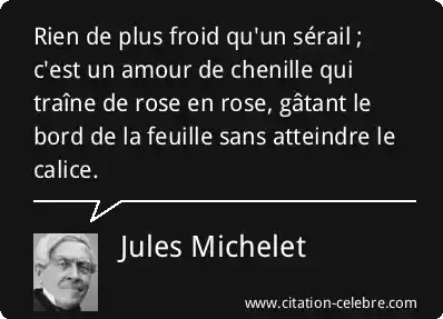 Rien de plus froid qu'un sérail ; c'est un amour de chenille qui traîne de rose en rose, gâtant le bord de la feuille sans atteindre le calice.