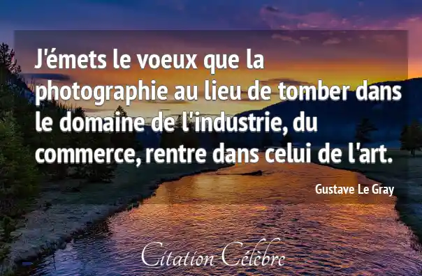 J'émets le voeux que la photographie au lieu de tomber dans le domaine de l'industrie, du commerce, rentre dans celui de l'art.