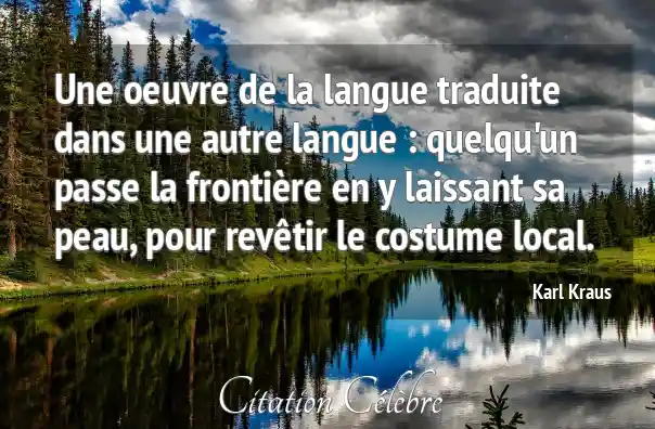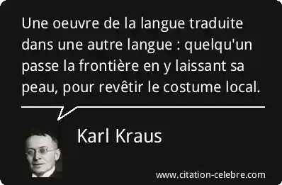 Une oeuvre de la langue traduite dans une autre langue : quelqu'un passe la frontière en y laissant sa peau, pour revêtir le costume local.