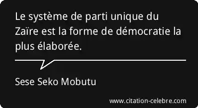 Citation Sese Seko Mobutu democratie : Le système de parti unique du Zaïre est la forme...