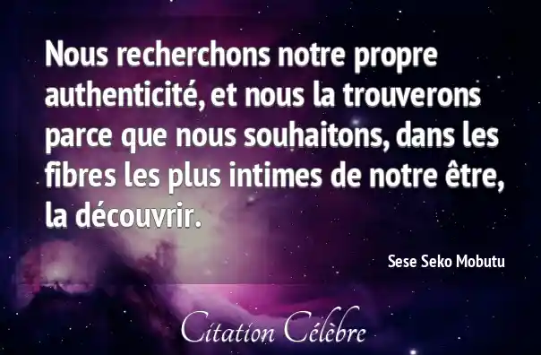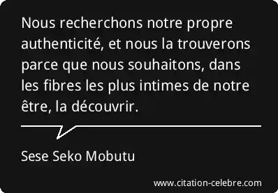 Nous recherchons notre propre authenticité, et nous la trouverons parce que nous souhaitons, dans les fibres les plus intimes de notre être, la découvrir.