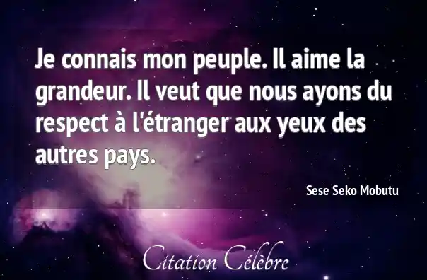 Je connais mon peuple. Il aime la grandeur. Il veut que nous ayons du respect à l'étranger aux yeux des autres pays.