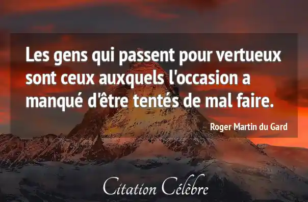 Les gens qui passent pour vertueux sont ceux auxquels l'occasion a manqué d'être tentés de mal faire.