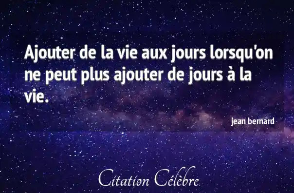 Ajouter de la vie aux jours lorsqu'on ne peut plus ajouter de jours à la vie.