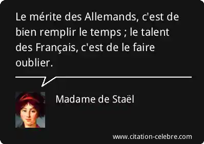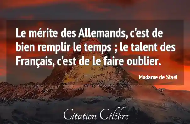 Le mérite des Allemands, c'est de bien remplir le temps ; le talent des Français, c'est de le faire oublier.
