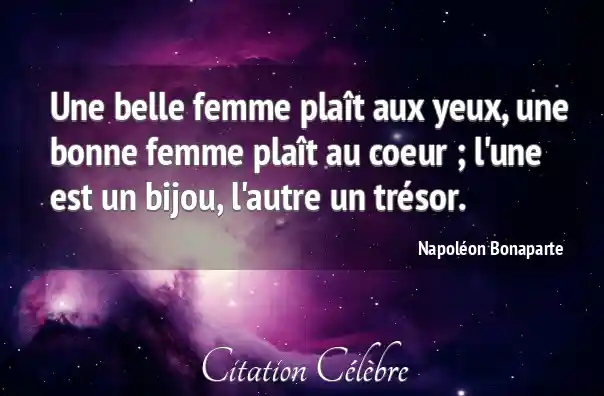Une belle femme plaît aux yeux, une bonne femme plaît au coeur ; l'une est un bijou, l'autre un trésor.