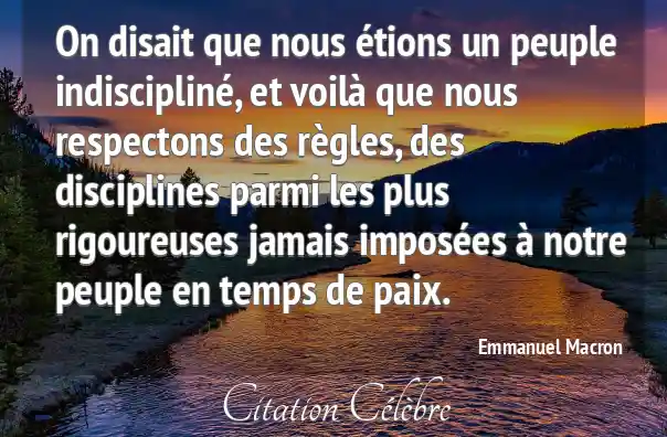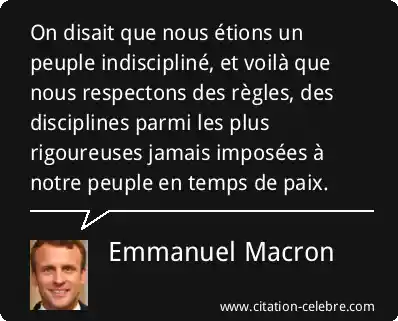 On disait que nous étions un peuple indiscipliné, et voilà que nous respectons des règles, des disciplines parmi les plus rigoureuses jamais imposées à notre peuple en temps de paix.