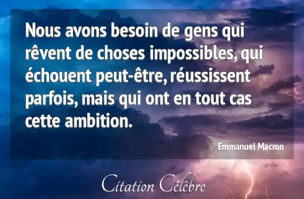 Nous avons besoin de gens qui rêvent de choses impossibles, qui échouent peut-être, réussissent parfois, mais qui ont en tout cas cette ambition.