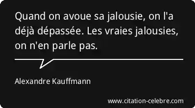 Quand on avoue sa jalousie, on l'a déjà dépassée. Les vraies jalousies, on n'en parle pas.