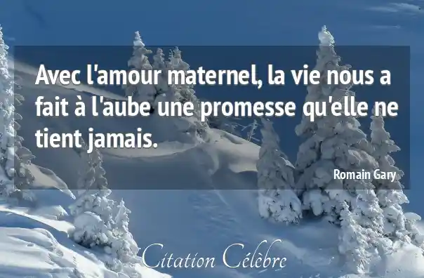 Avec l'amour maternel, la vie nous a fait à l'aube une promesse qu'elle ne tient jamais.