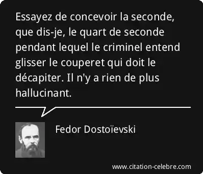 Essayez de concevoir la seconde, que dis-je, le quart de seconde pendant lequel le criminel entend glisser le couperet qui doit le décapiter. Il n'y a rien de plus hallucinant.