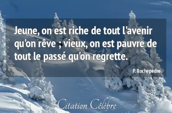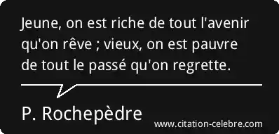 Jeune, on est riche de tout l'avenir qu'on rêve ; vieux, on est pauvre de tout le passé qu'on regrette.