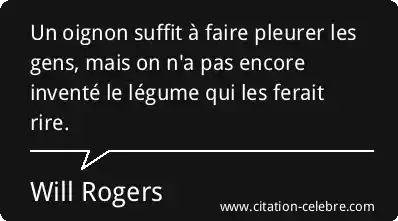 Un oignon suffit à faire pleurer les gens, mais on n'a pas encore inventé le légume qui les ferait rire.