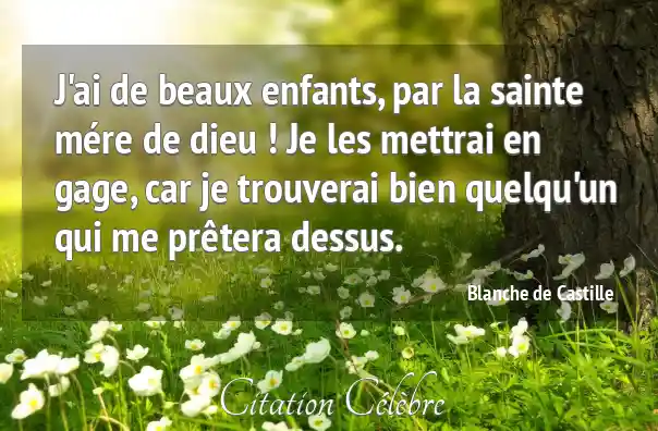 J'ai de beaux enfants, par la sainte mére de dieu ! Je les mettrai en gage, car je trouverai bien quelqu'un qui me prêtera dessus.