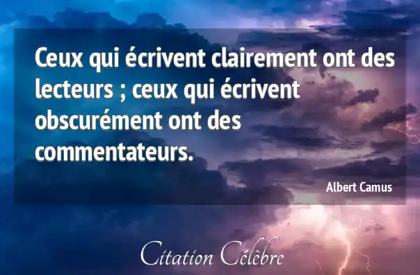 Ceux qui écrivent clairement ont des lecteurs ; ceux qui écrivent obscurément ont des commentateurs.
