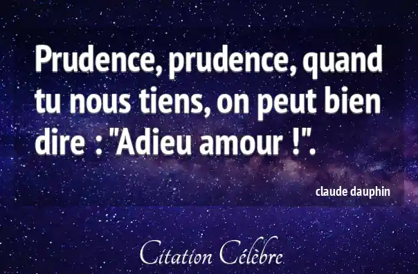 Prudence, prudence, quand tu nous tiens, on peut bien dire : "Adieu amour !".