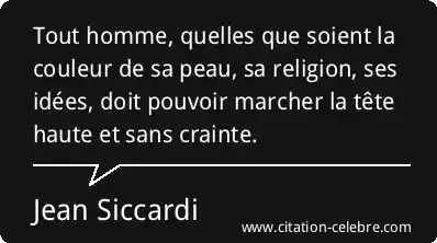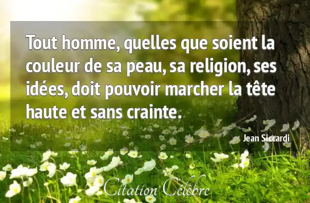Tout homme, quelles que soient la couleur de sa peau, sa religion, ses idées, doit pouvoir marcher la tête haute et sans crainte.
