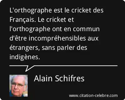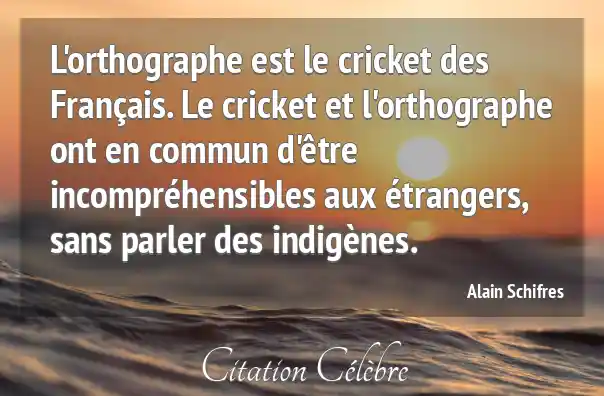 L'orthographe est le cricket des Français. Le cricket et l'orthographe ont en commun d'être incompréhensibles aux étrangers, sans parler des indigènes.
