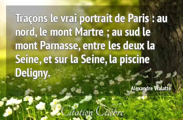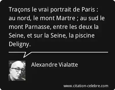 Traçons le vrai portrait de Paris : au nord, le mont Martre ; au sud le mont Parnasse, entre les deux la Seine, et sur la Seine, la piscine Deligny.