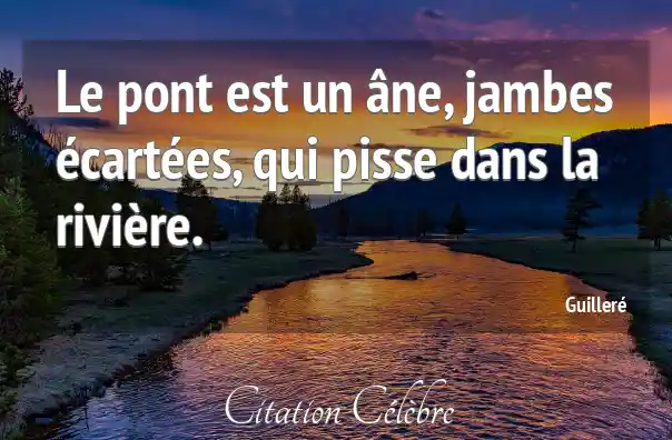 Le pont est un âne, jambes écartées, qui pisse dans la rivière.