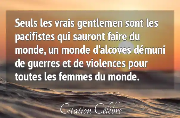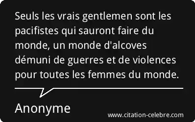 Seuls les vrais gentlemen sont les pacifistes qui sauront faire du monde, un monde d'alcoves démuni de guerres et de violences pour toutes les femmes du monde.