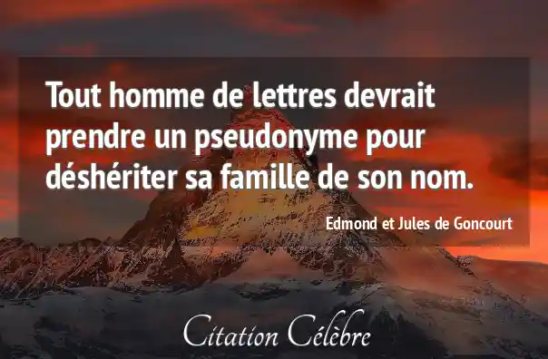 Tout homme de lettres devrait prendre un pseudonyme pour déshériter sa famille de son nom.