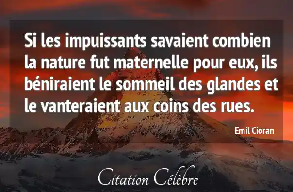 Si les impuissants savaient combien la nature fut maternelle pour eux, ils béniraient le sommeil des glandes et le vanteraient aux coins des rues.