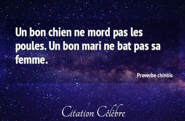 Un bon chien ne mord pas les poules. Un bon mari ne bat pas sa femme.