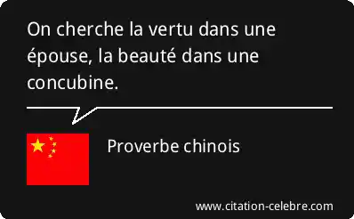 Proverbe  Chinois Beaute : On cherche la vertu dans une épouse, la beauté dans...
