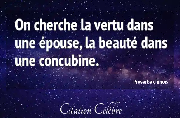 On cherche la vertu dans une épouse, la beauté dans une concubine.