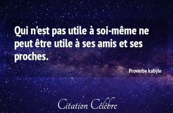 Qui n'est pas utile à soi-même ne peut être utile à ses amis et ses proches.