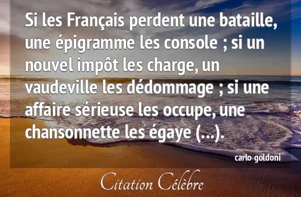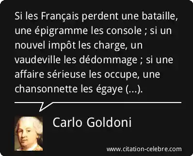 Si les Français perdent une bataille, une épigramme les console ; si un nouvel impôt les charge, un vaudeville les dédommage ; si une affaire sérieuse les occupe, une chansonnette les égaye (...).
