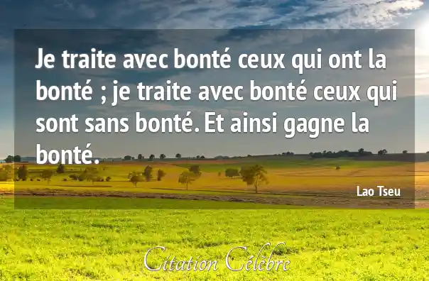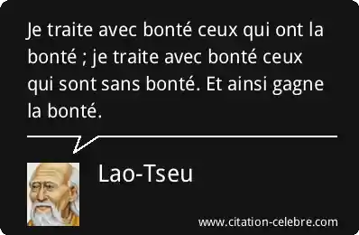 Je traite avec bonté ceux qui ont la bonté ; je traite avec bonté ceux qui sont sans bonté. Et ainsi gagne la bonté.