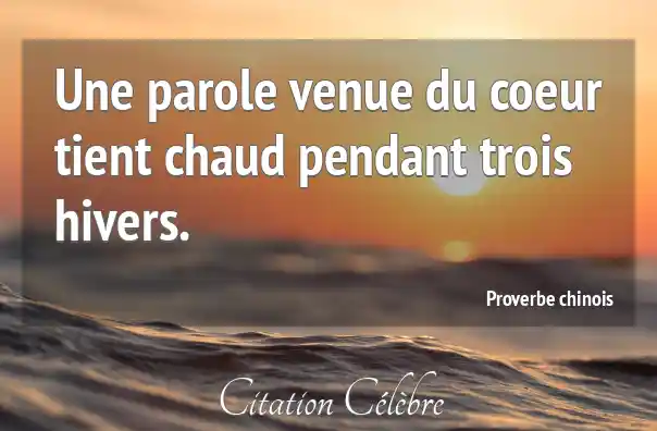 Une parole venue du coeur tient chaud pendant trois hivers.