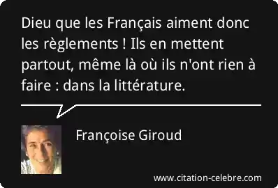 Dieu que les Français aiment donc les règlements ! Ils en mettent partout, même là où ils n'ont rien à faire : dans la littérature.