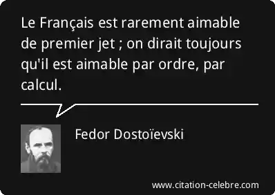 Le Français est rarement aimable de premier jet ; on dirait toujours qu'il est aimable par ordre, par calcul.