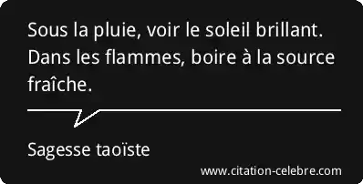 Sous la pluie, voir le soleil brillant. Dans les flammes, boire à la source fraîche.