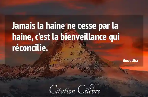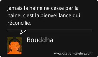 Jamais la haine ne cesse par la haine, c'est la bienveillance qui réconcilie.