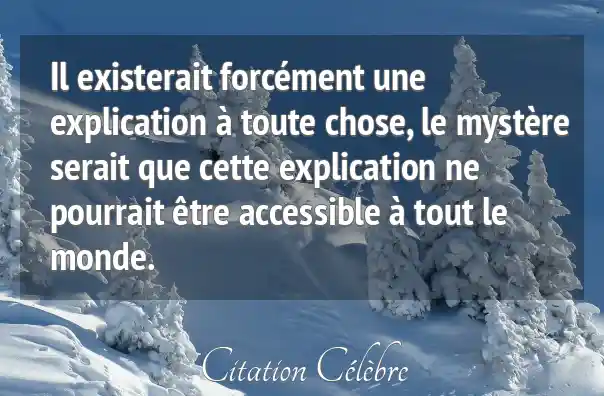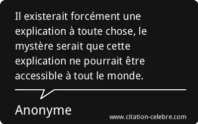 Il existerait forcément une explication à toute chose, le mystère serait que cette explication ne pourrait être accessible à tout le monde.