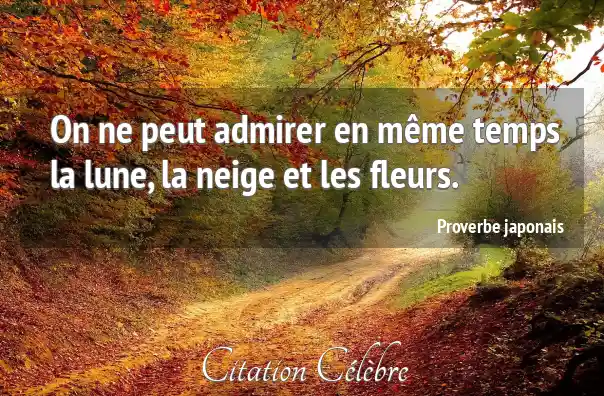 On ne peut admirer en même temps la lune, la neige et les fleurs.