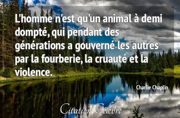 L'homme n'est qu'un animal à demi dompté, qui pendant des générations a gouverné les autres par la fourberie, la cruauté et la violence.