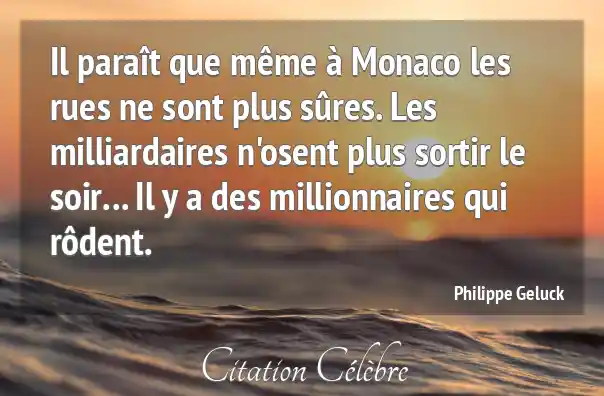 Il paraît que même à Monaco les rues ne sont plus sûres. Les milliardaires n'osent plus sortir le soir... Il y a des millionnaires qui rôdent.