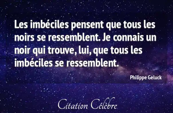 Les imbéciles pensent que tous les noirs se ressemblent. Je connais un noir qui trouve, lui, que tous les imbéciles se ressemblent.